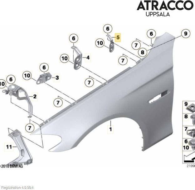 BMW 5 F10/F11/F18 09-17 Skärmfäste Fram Vä